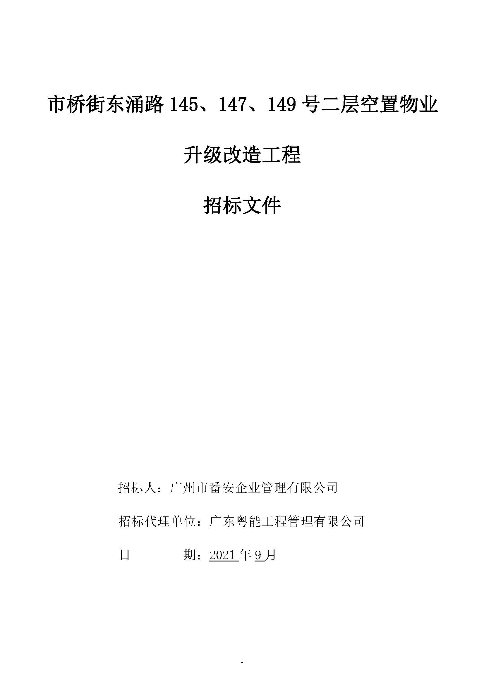 市桥街东涌路145、147、149号二层空置物业升级改造工程招标书