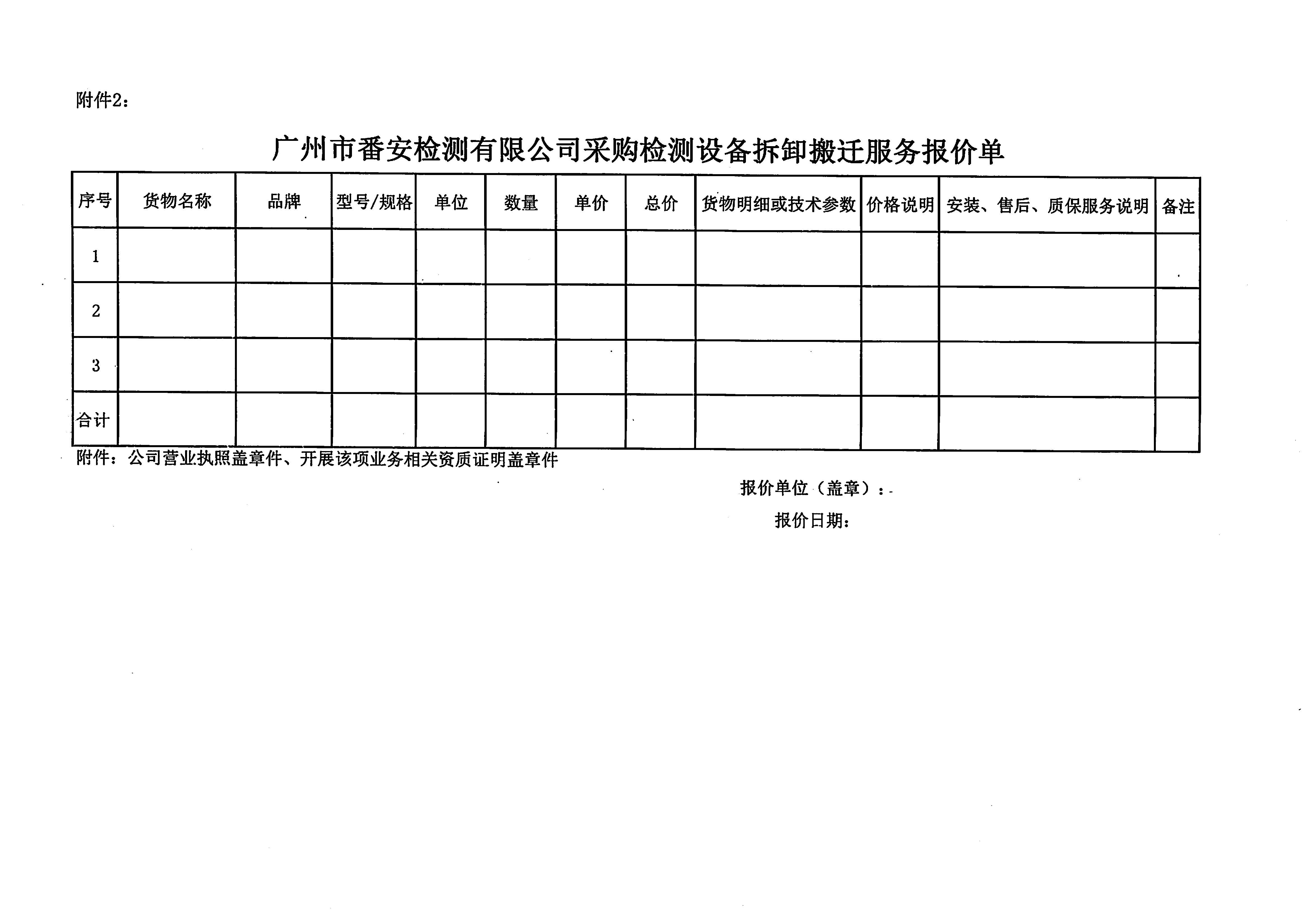 附件2:广州市番安检测有限公司采购检测设备拆卸搬迁服务报价单.xls