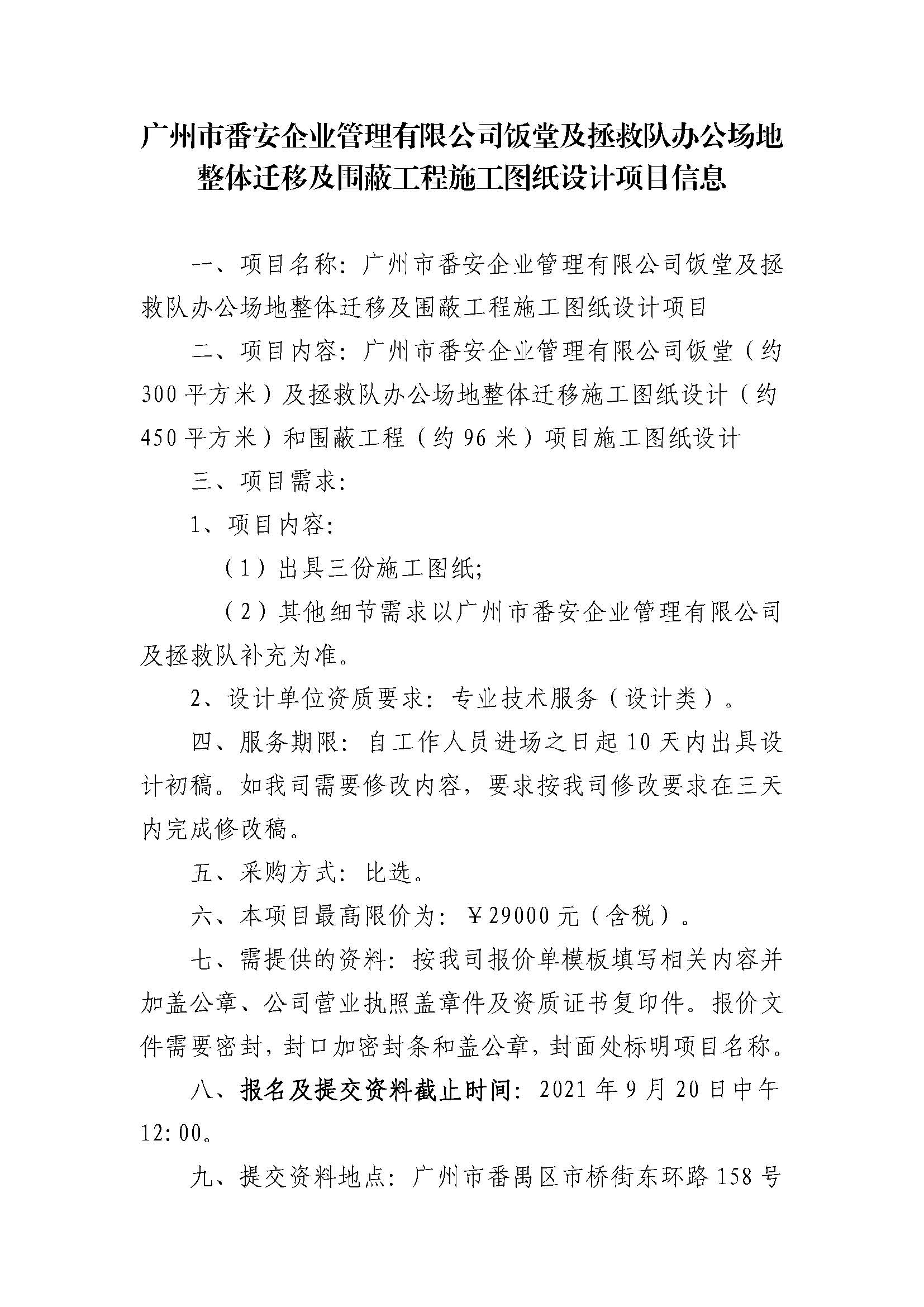 广州市番安企业管理有限公司饭堂及拯救队办公场地整体迁移及围蔽工程施工图纸设计项目报价单(模板).xls