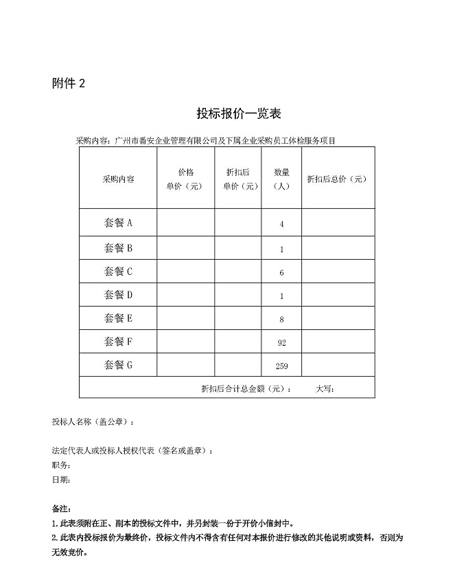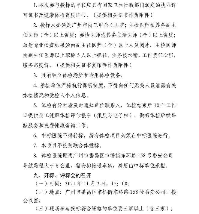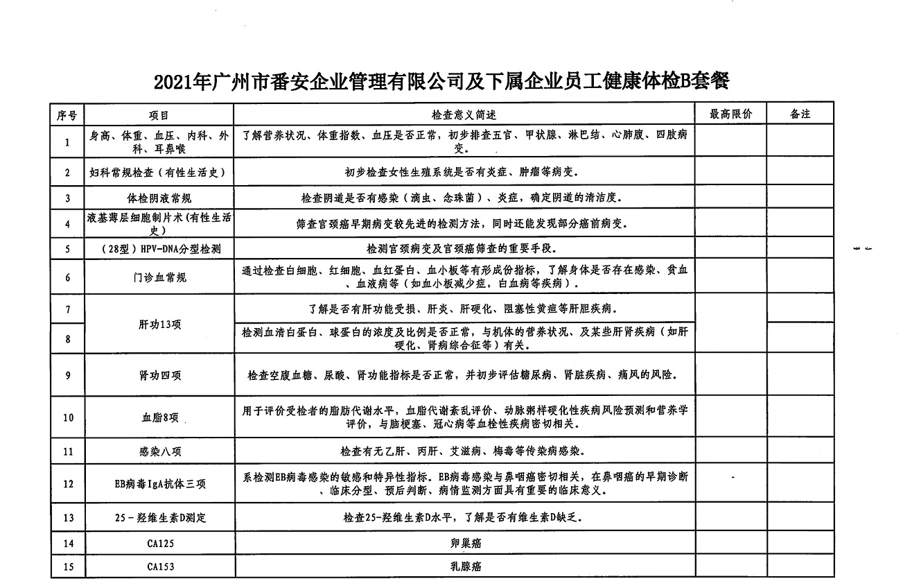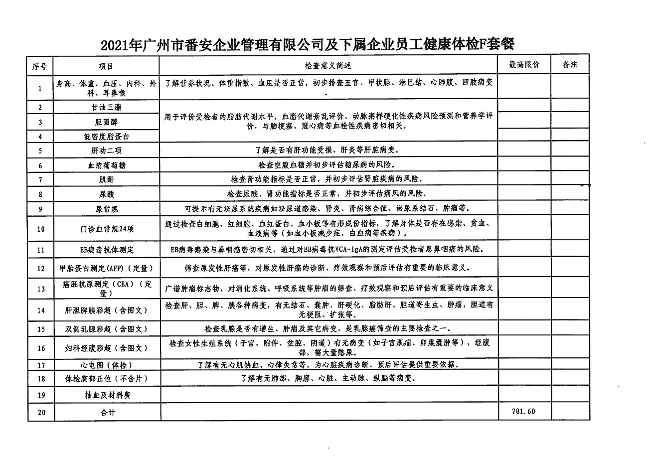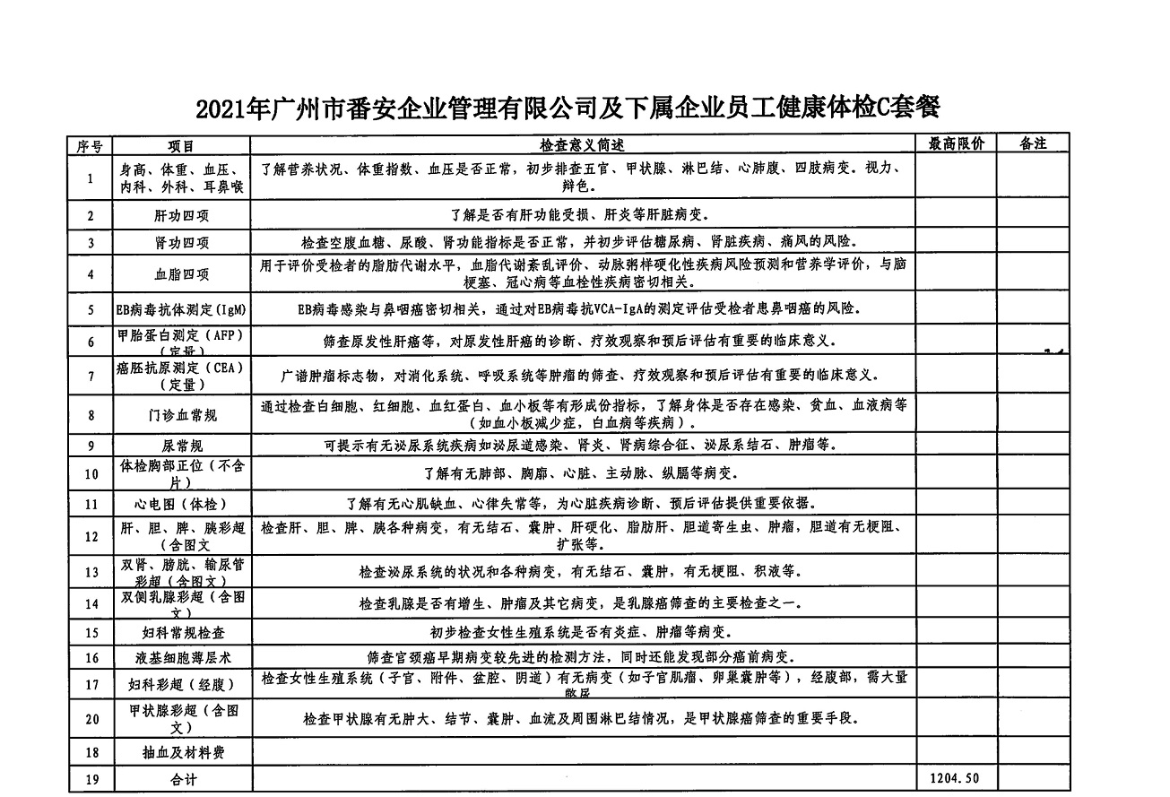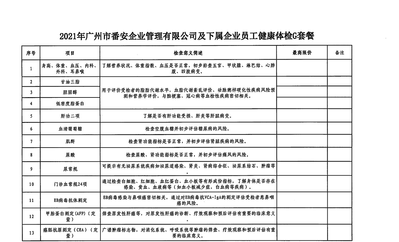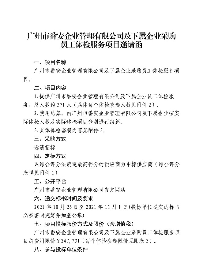 广州市番安企业管理有限公司及下属企业员工体检项目邀请函