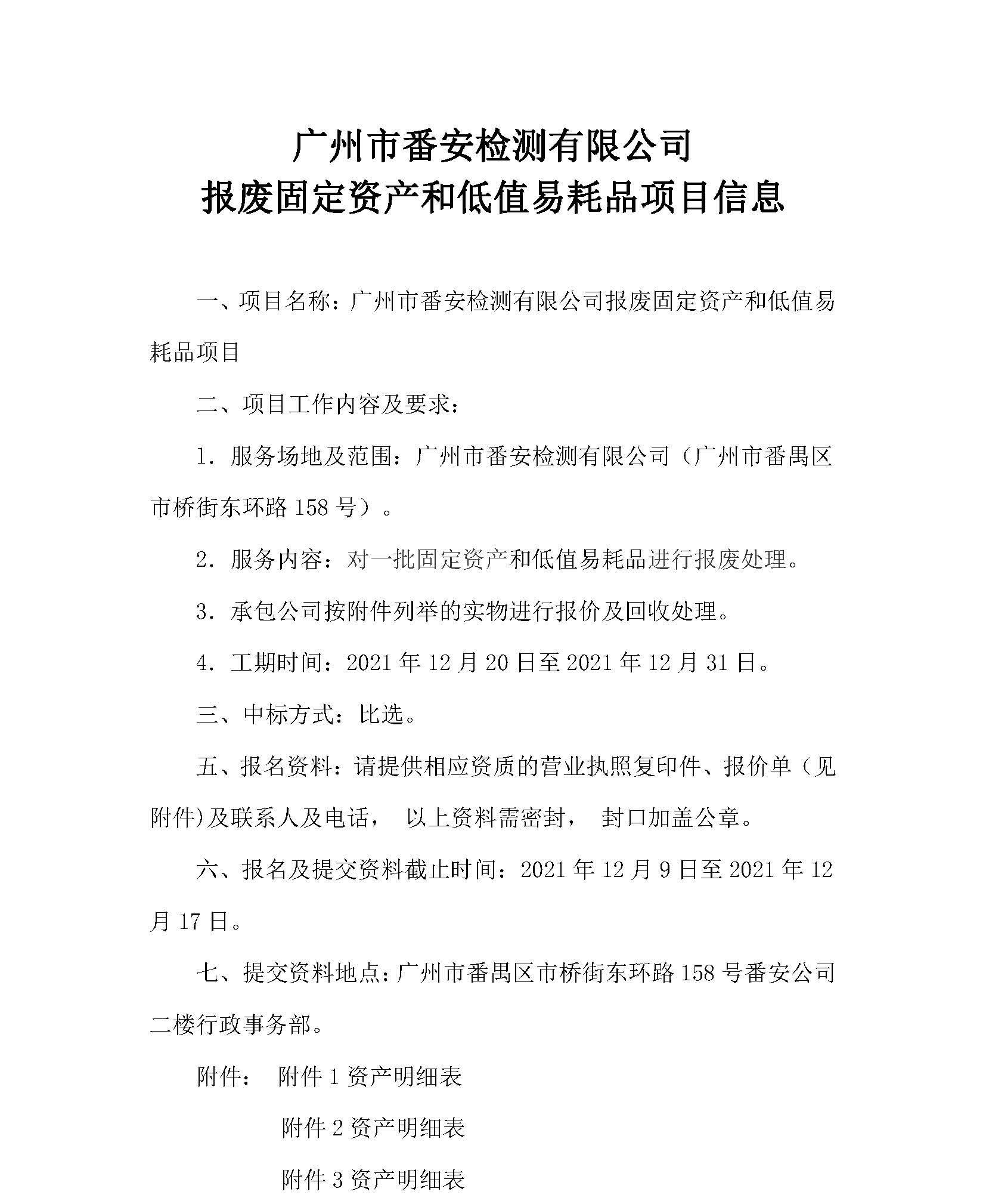 广州市番安检测有限公司报废固定资产和低值易耗品项目