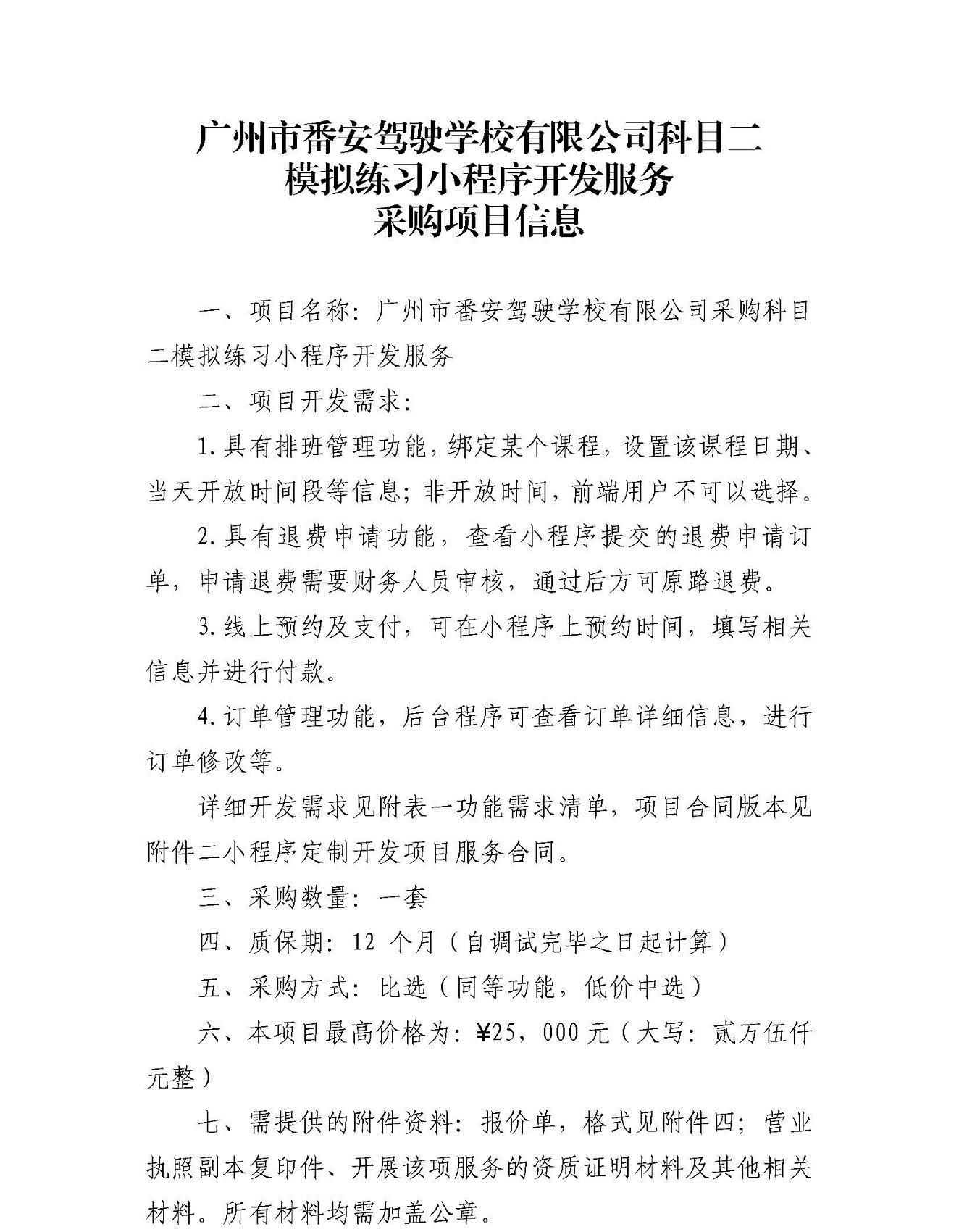 附件3:广州市番安驾驶学校有限公司采购科目二模拟练习小程序发开服务报价单.pdf