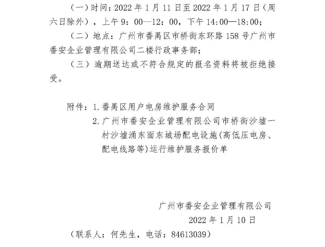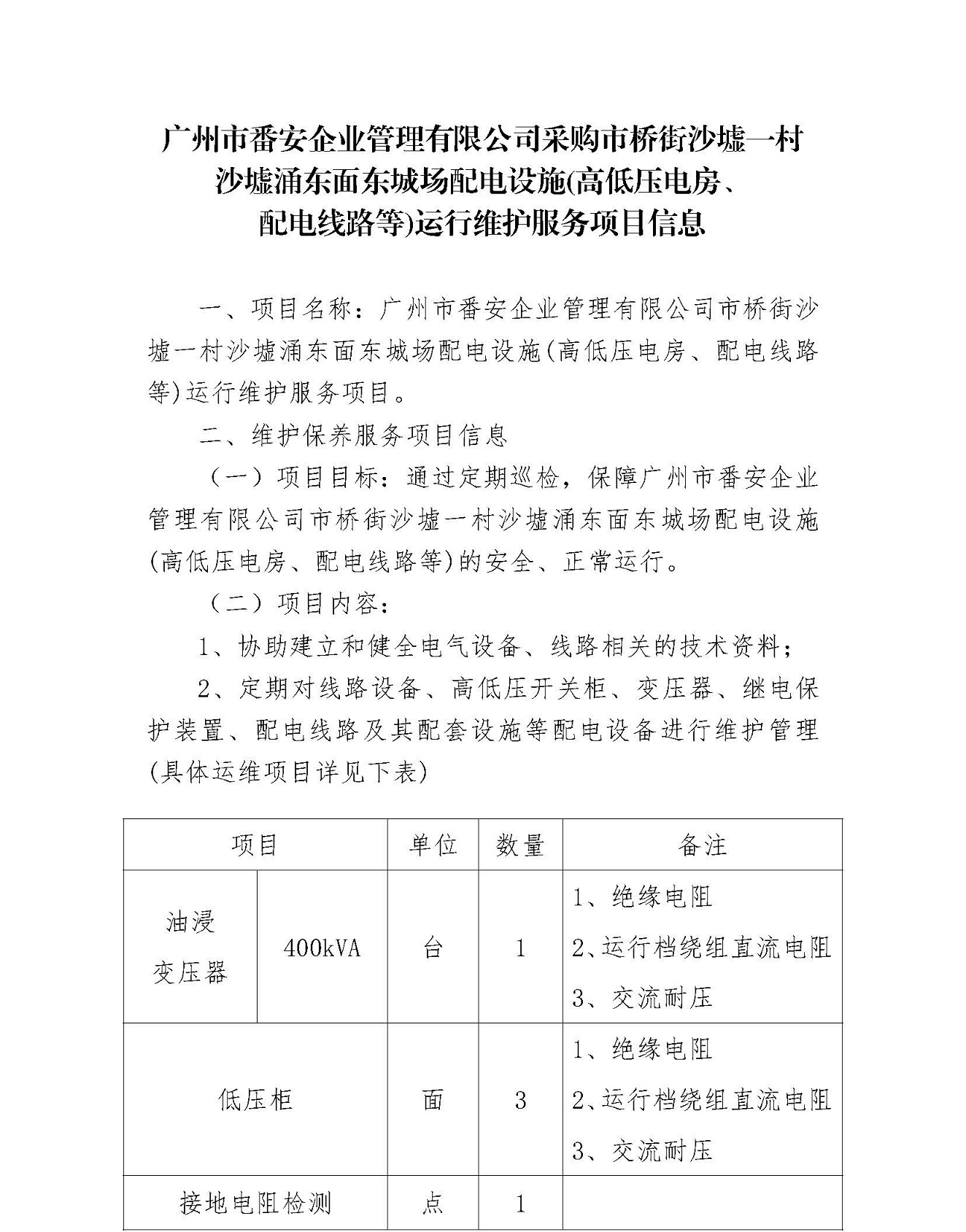 附件2广州市番安企业管理有限公司市桥街沙墟一村沙墟涌东面东城场配电设施(高低压电房、配电线路等)运行维护服务项目报价单.xls