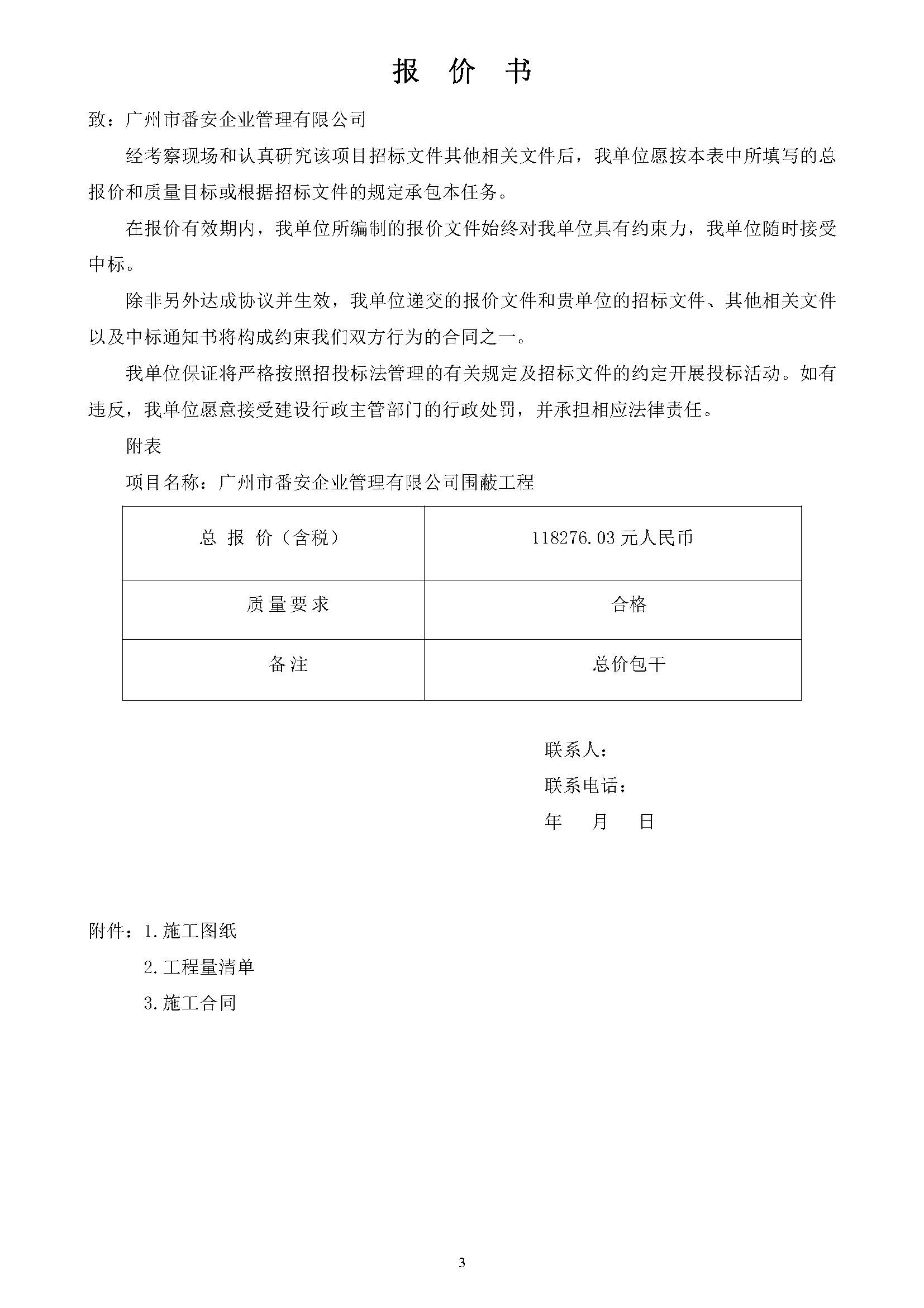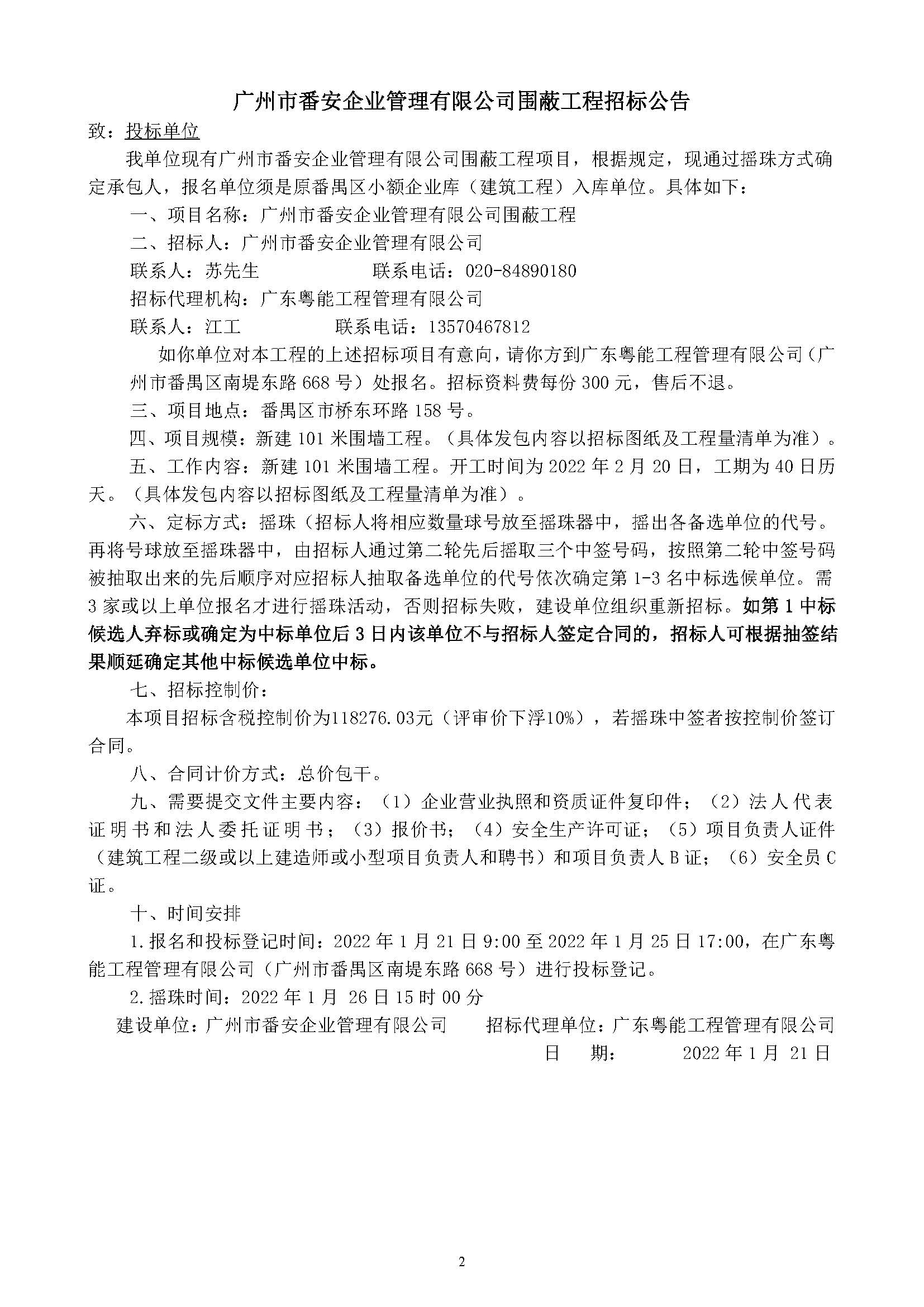 广州市番安企业管理有限公司围蔽工程招标公告