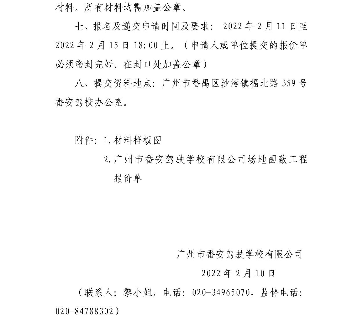 附件2:广州市番安驾驶学校有限公司场地围蔽工程报价单.xls