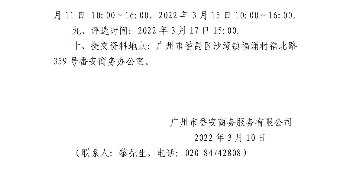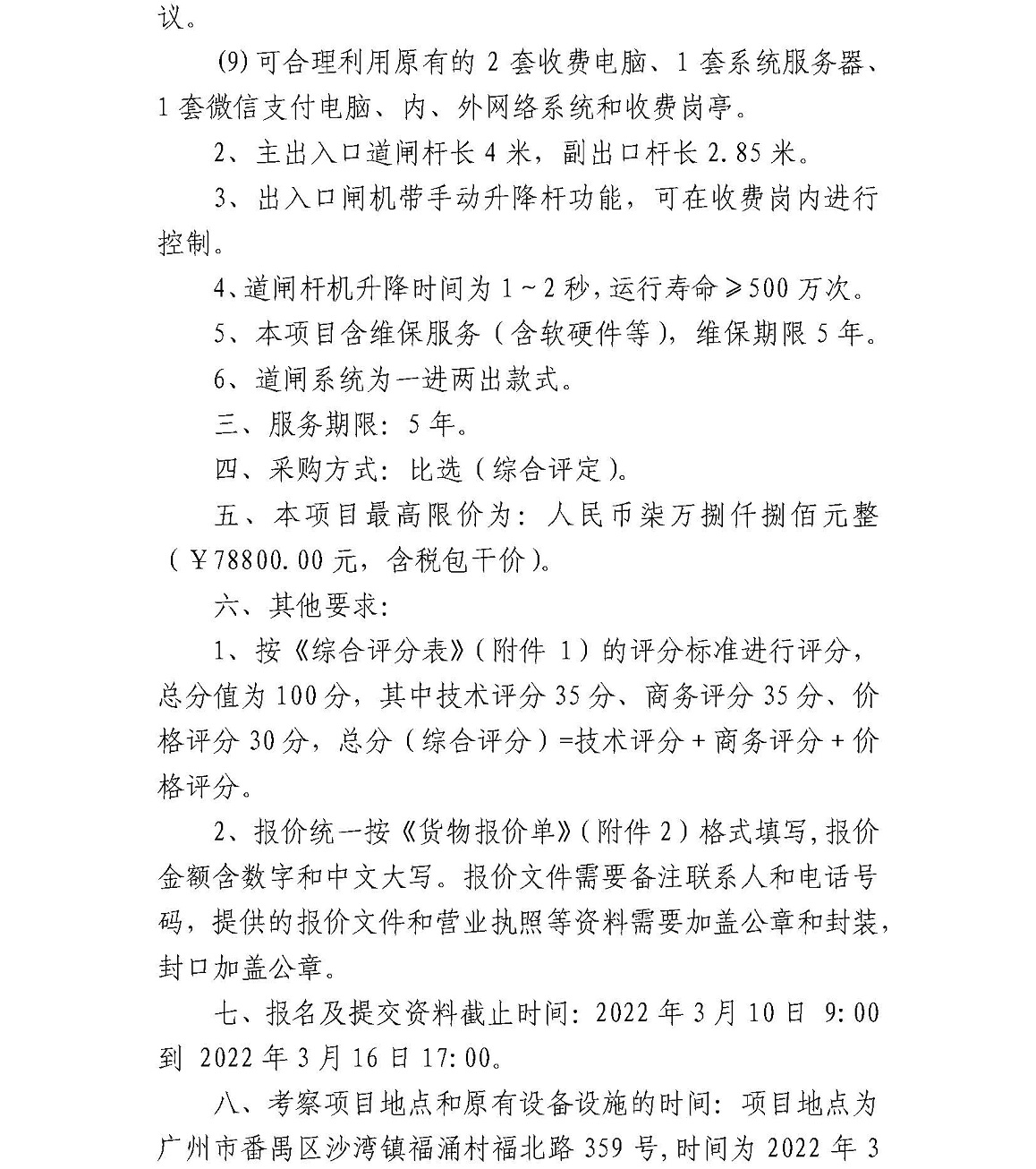 广州市番安商务服务有限公司停车场采购道闸设备项目信息