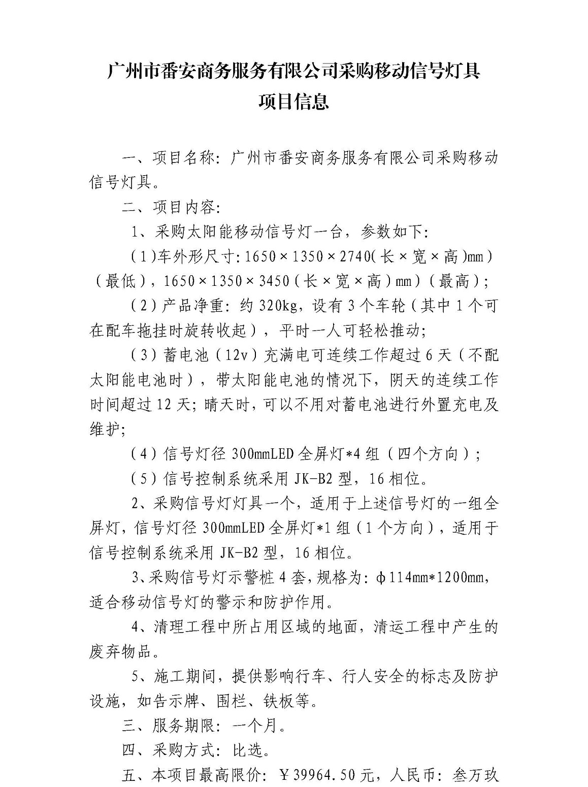 广州市番安商务服务有限公司购移动信号灯具项目信息