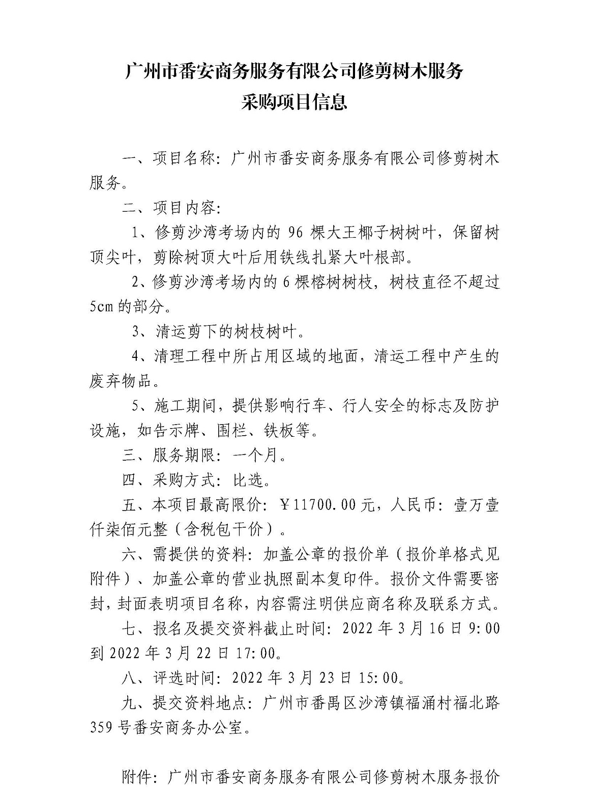 广州市番安商务服务有限公司修剪树木服务采购项目信息