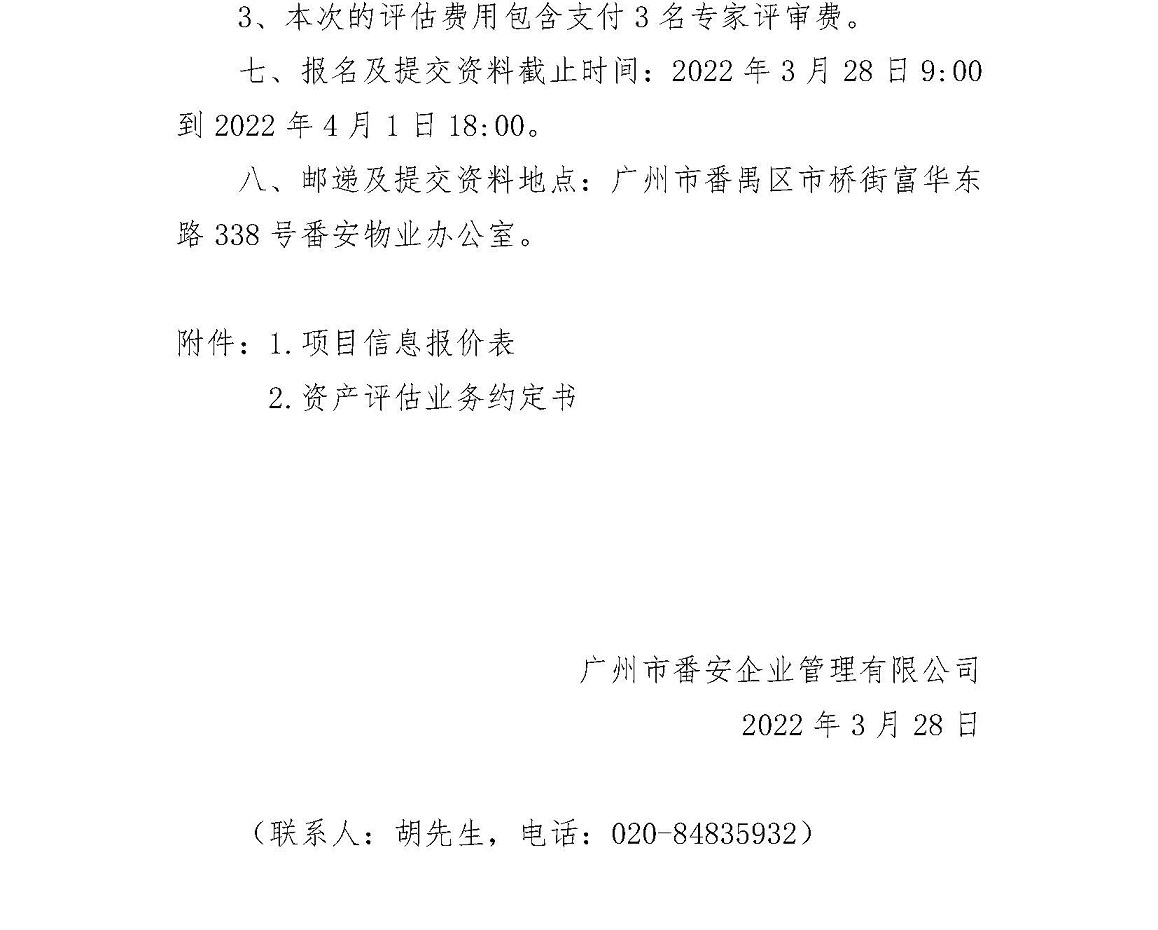 广州市番安企业管理有限公司沙墟一村沙墟涌东面东城场土地第1、2、3、21、22号土地租金价值评估服务采购项目信息(第二次发布)