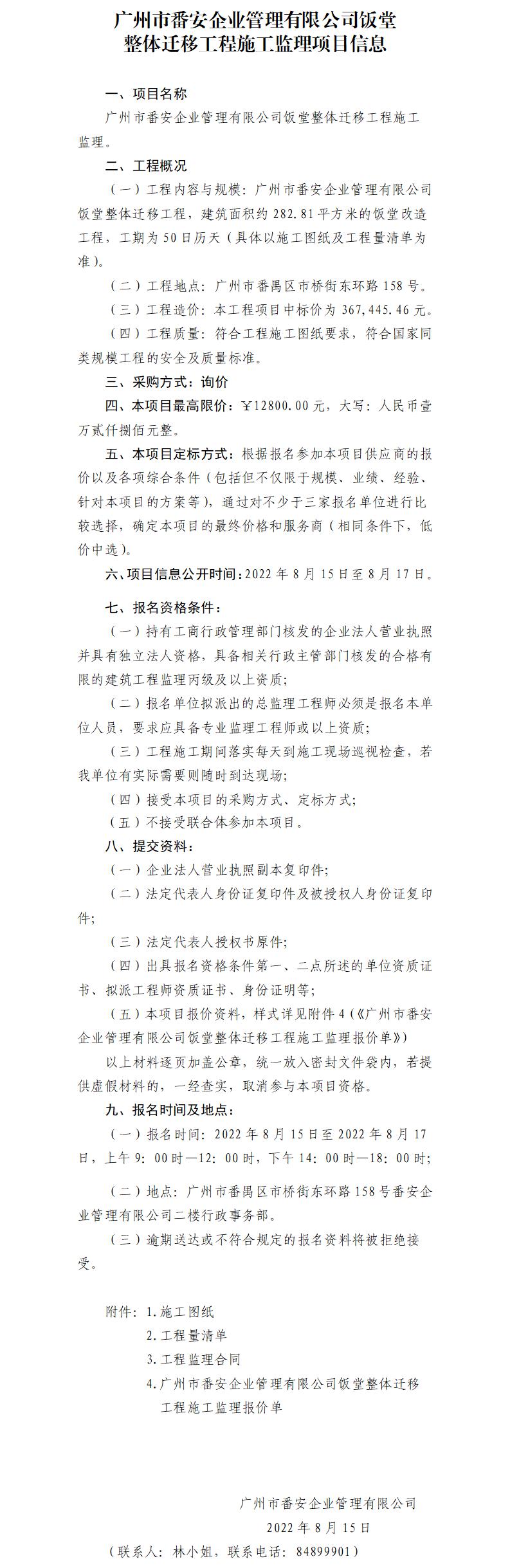 附件4:广州市番安企业管理有限公司饭堂整体迁移工程施工监理报价单.xls