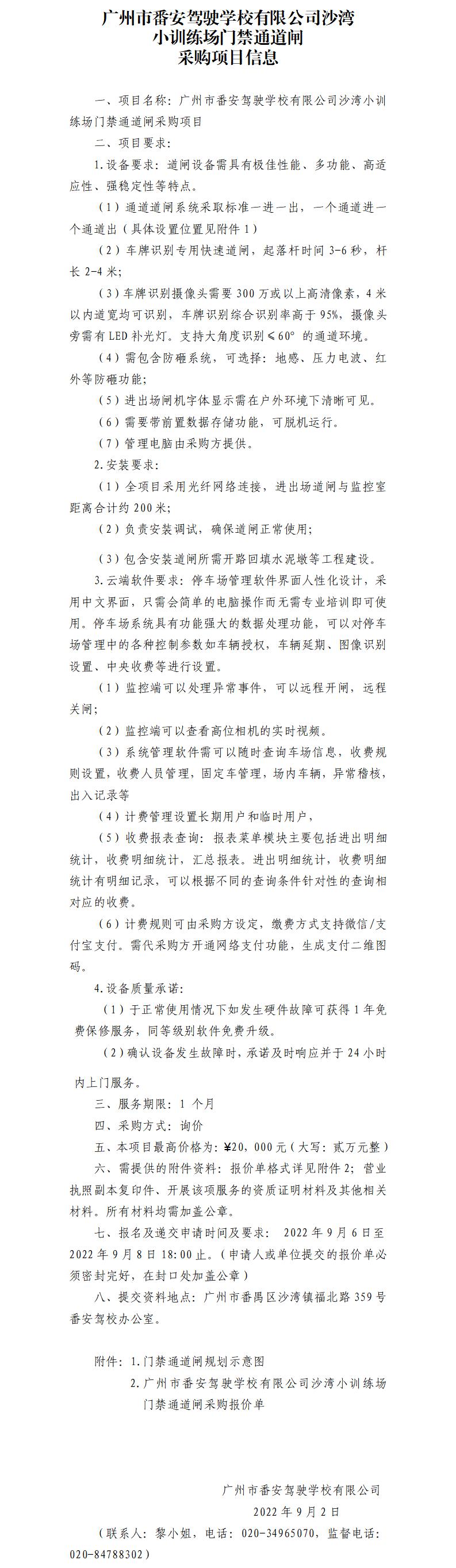 附件2:广州市番安驾驶学校有限公司沙湾小训练场门禁通道闸报价单.xls