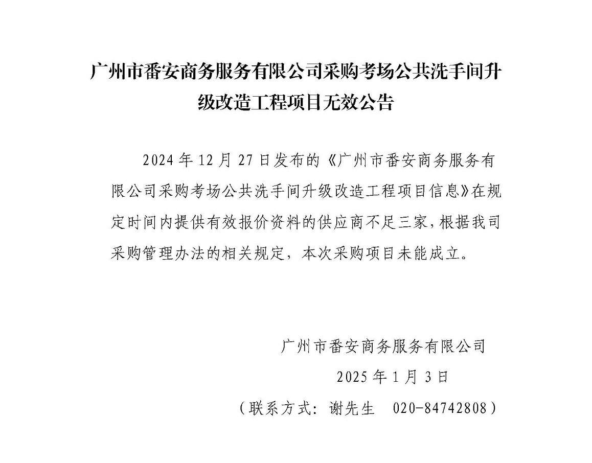 广州市番安商务服务有限公司采购考场公共洗手间升级改造工程项目无效公告