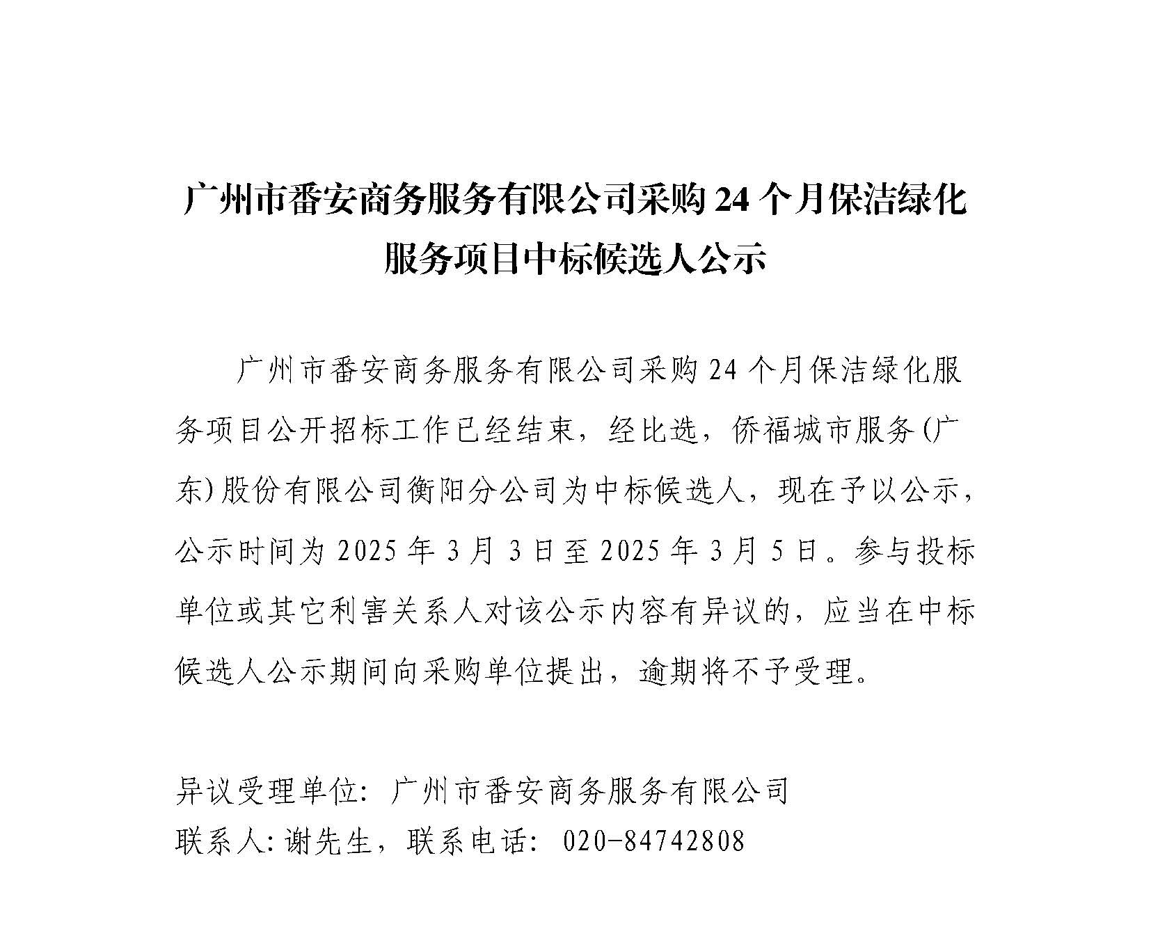 广州市番安商务服务有限公司采购24个月保洁绿化服务项目中标候选人公示