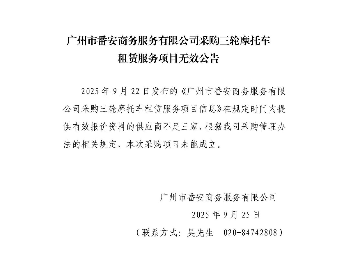 广州市番安商务服务有限公司采购三轮摩托车租赁服务项目无效公告
