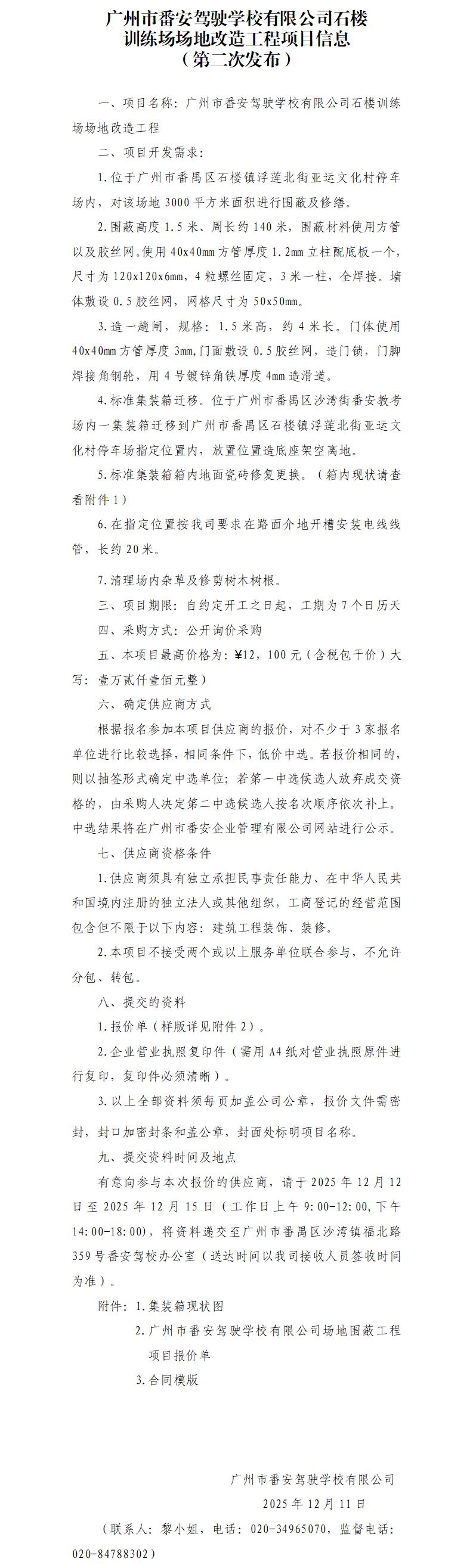 附件2:广州市番安驾驶学校有限公司石楼训练场场地改造工程项目报价单.xls