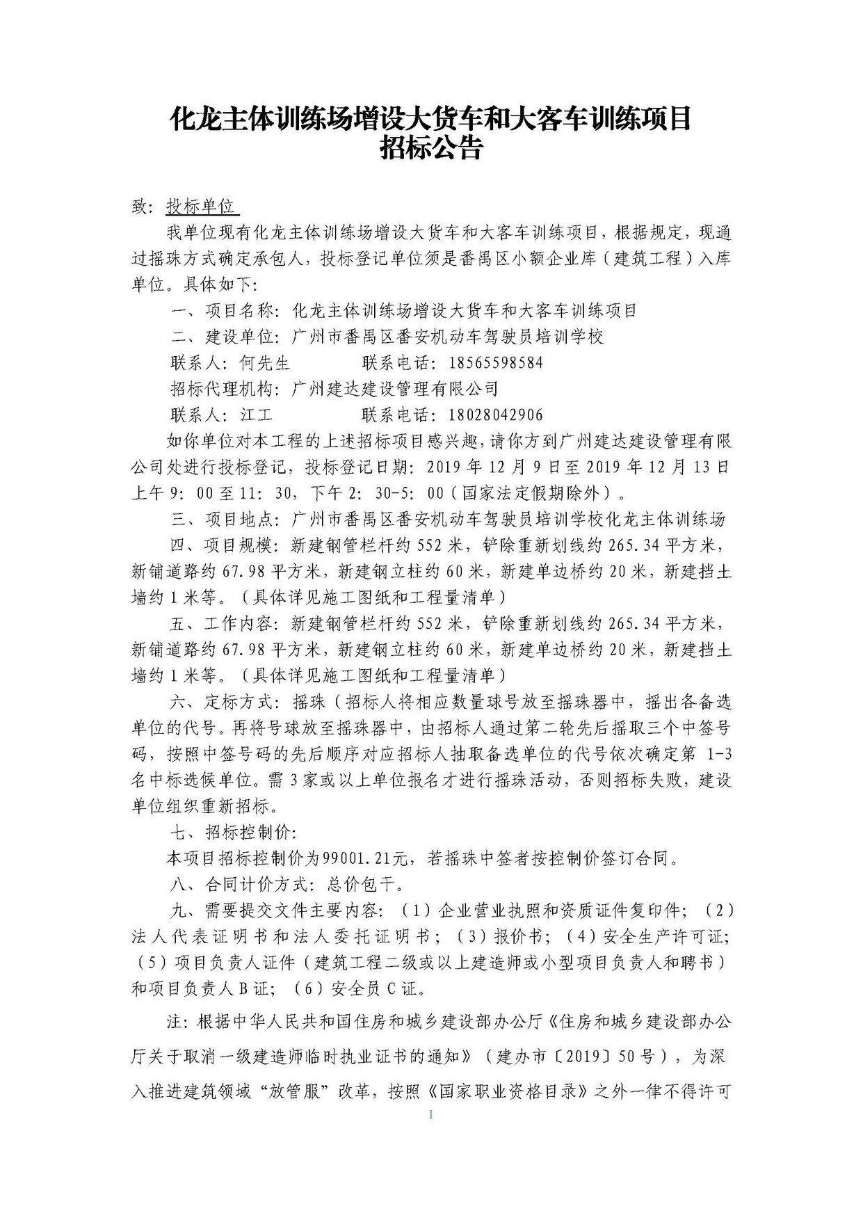 化龙主体训练场增设大货车和大客车训练项目(工程量清单).xls