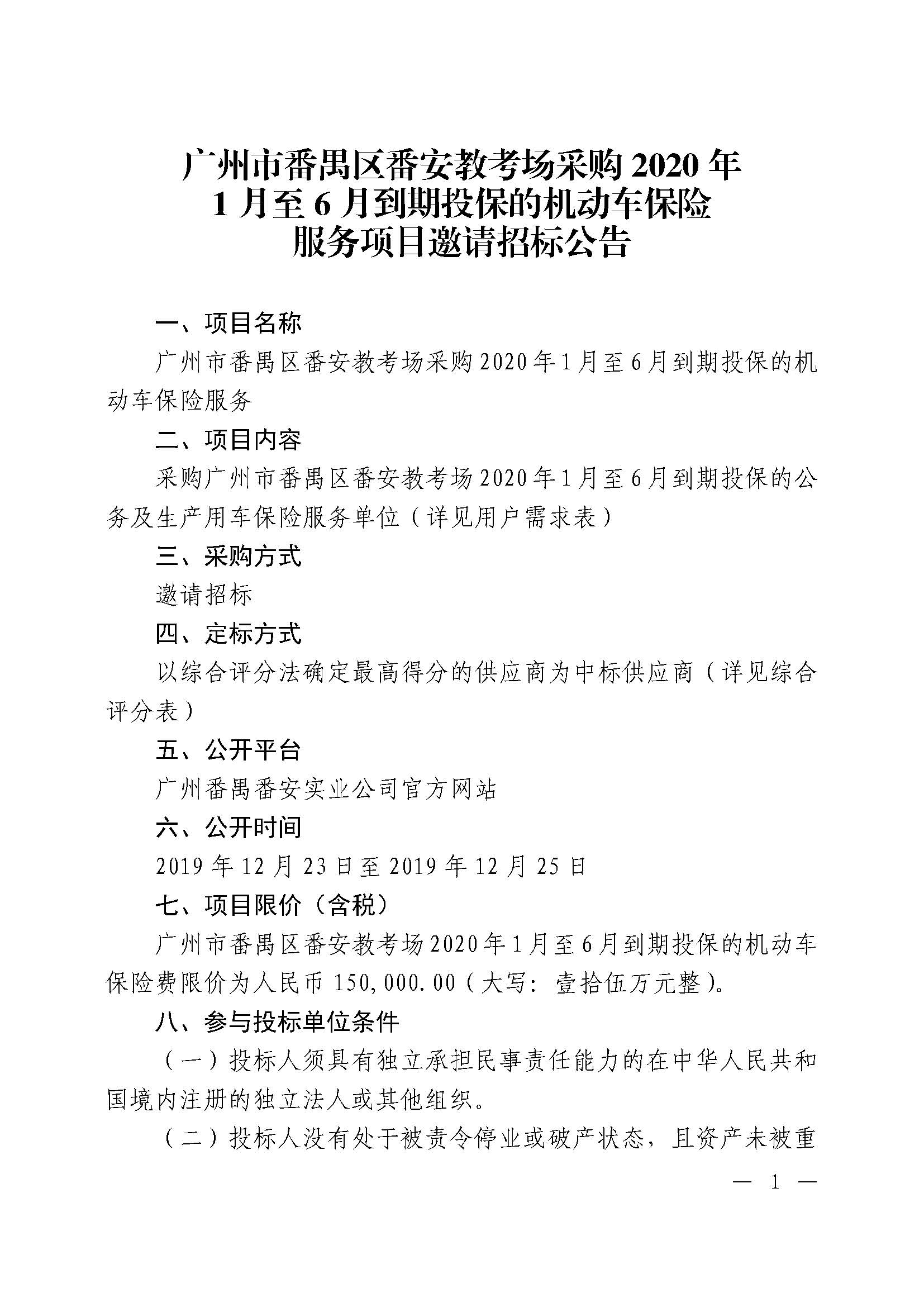 广州市番禺区番安教考场采购2020年1月至6月到期投保的机动车保险服务项目邀请招标公告