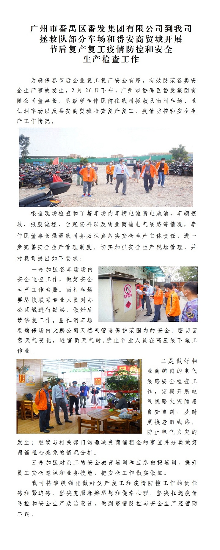 广州市番禺番发集团有限公司到我司拯救队部分车场和番安商贸城开展节后复产复工疫情防控和安全生产检查工作