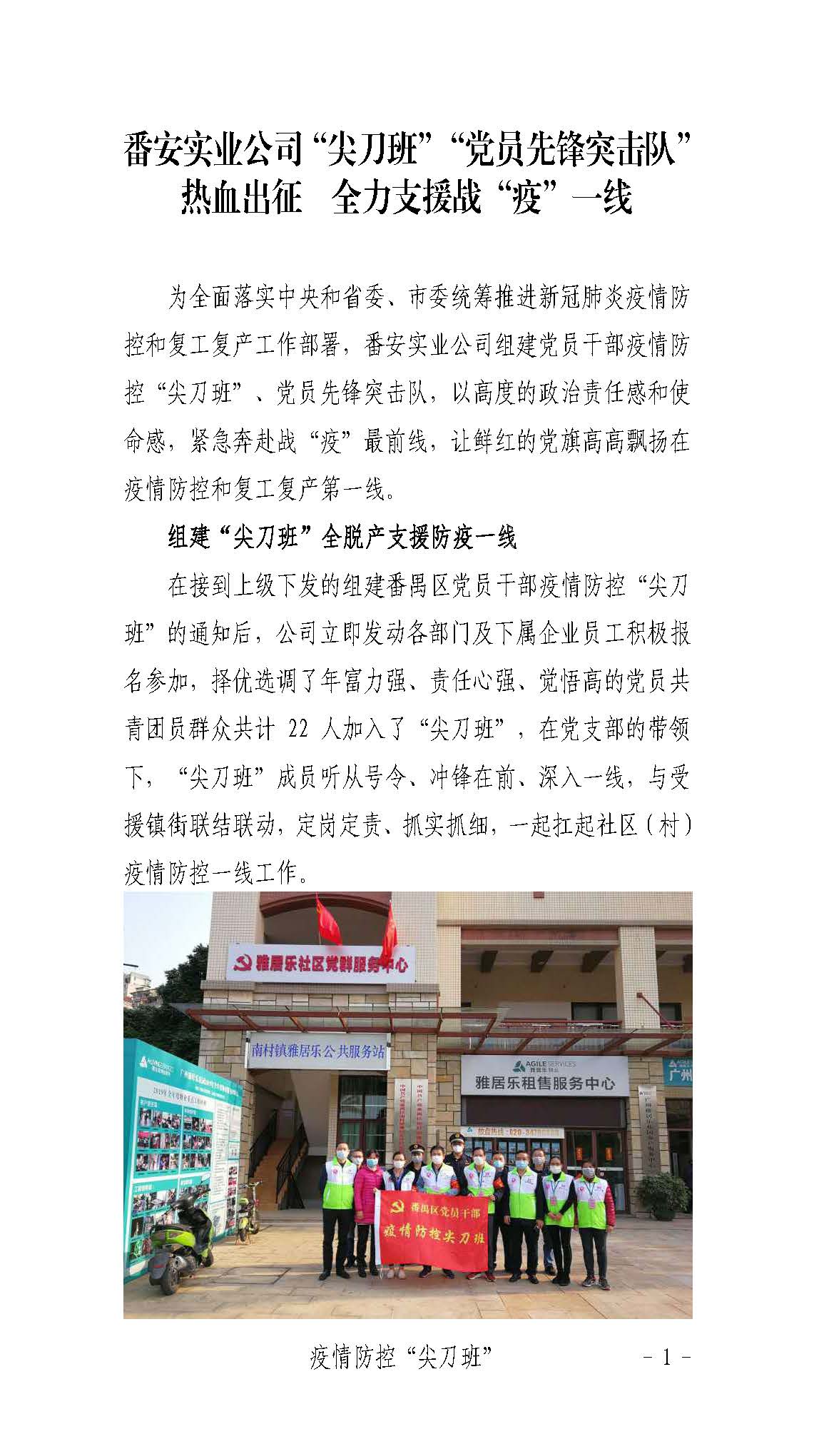 番安实业公司“尖刀班”“党员先锋突击队”热血出征 全力支援战“疫”一线