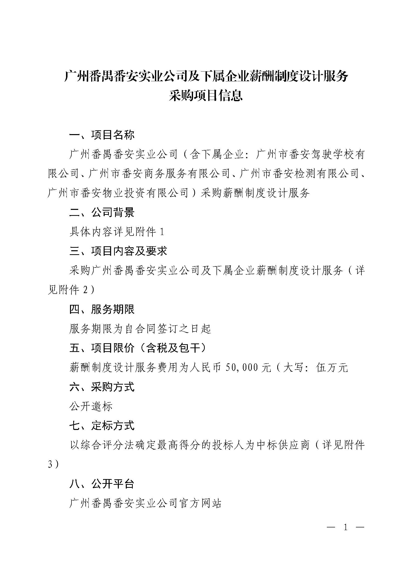 广州番禺番安实业公司下属企业薪酬制度设计服务采购项目信息
