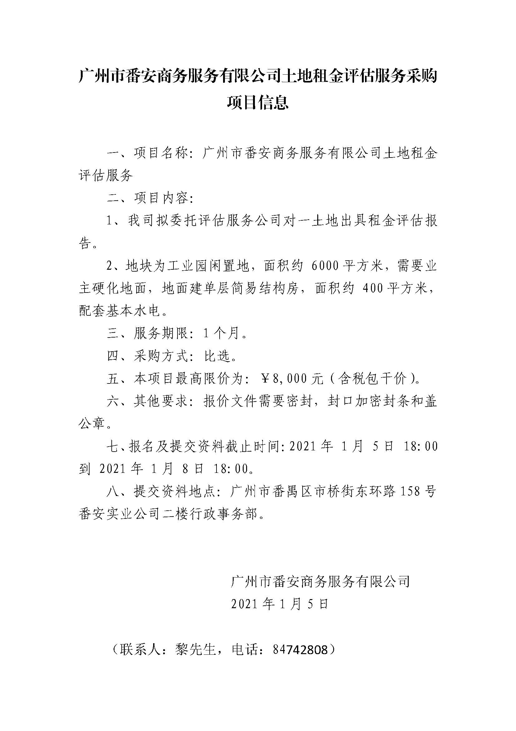 广州市番安商务服务有限公司土地租金评估服务采购