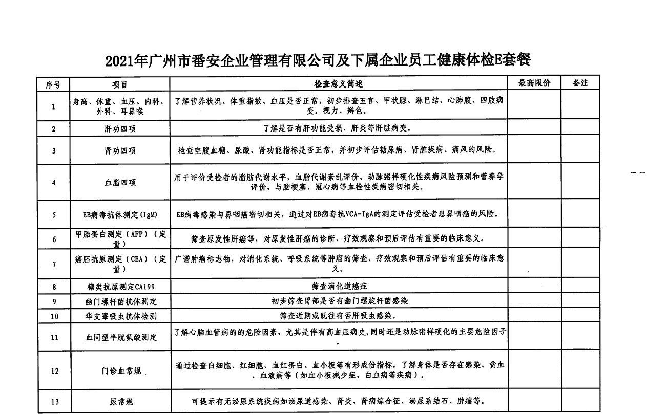 广州市番安企业管理有限公司及下属企业员工体检项目邀请函