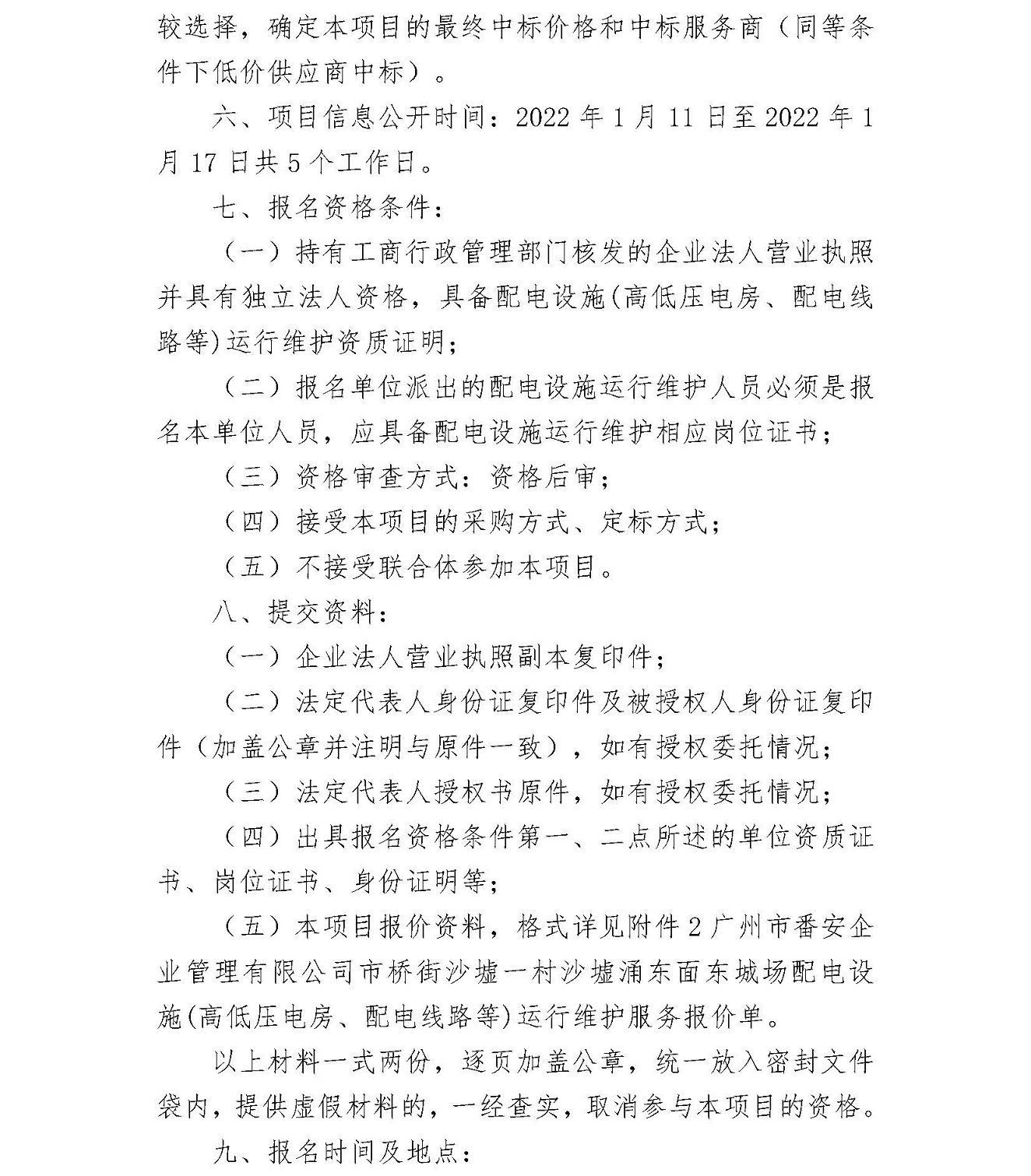 附件2广州市番安企业管理有限公司市桥街沙墟一村沙墟涌东面东城场配电设施(高低压电房、配电线路等)运行维护服务项目报价单.xls