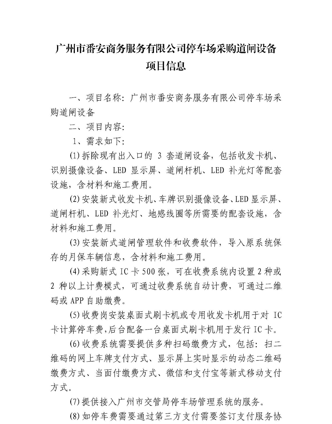 广州市番安商务服务有限公司停车场采购道闸设备项目信息
