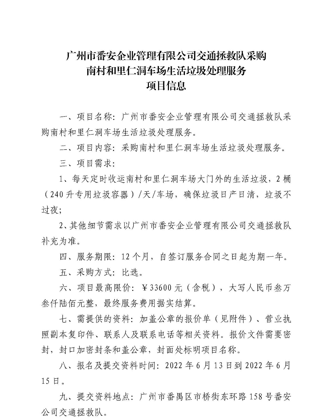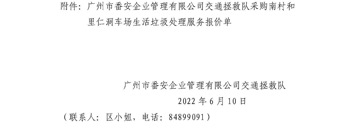 附件:广州市番安企业管理有限公司交通拯救队采购南村和里仁洞车场生活垃圾处理服务报价单.xls
