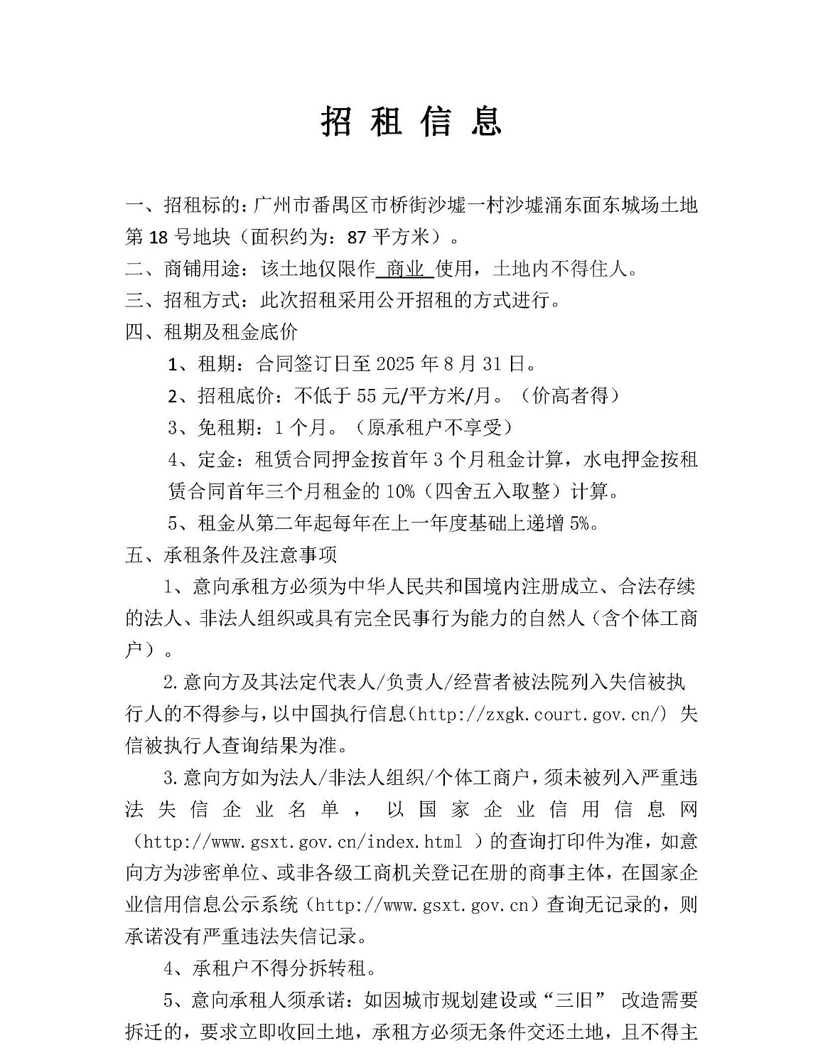 广州市番禺区市桥街沙墟一村沙墟涌东面东城场土地第18号土地招租信息