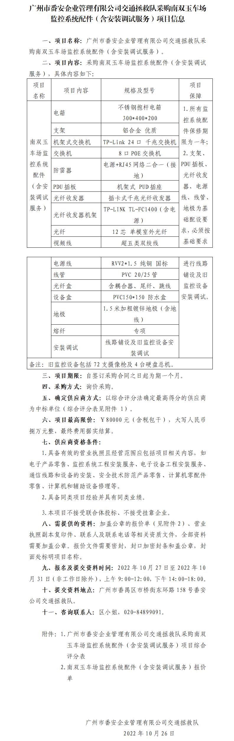 附件1:广州市番安企业管理有限公司交通拯救队采购南双玉车场监控系统配件(含安装调试服务)项目综合评分表.pdf