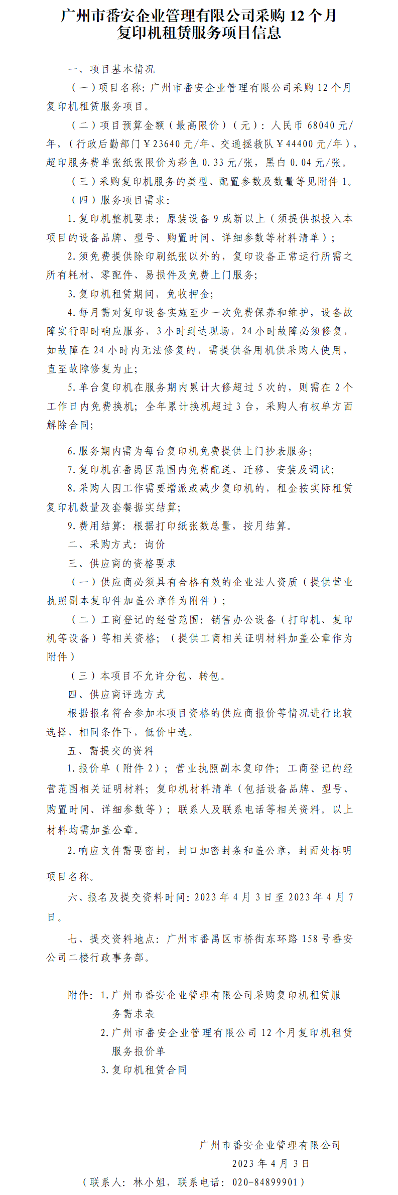 附件1:广州市番安企业管理有限公司采购复印机租赁服务需求表.doc