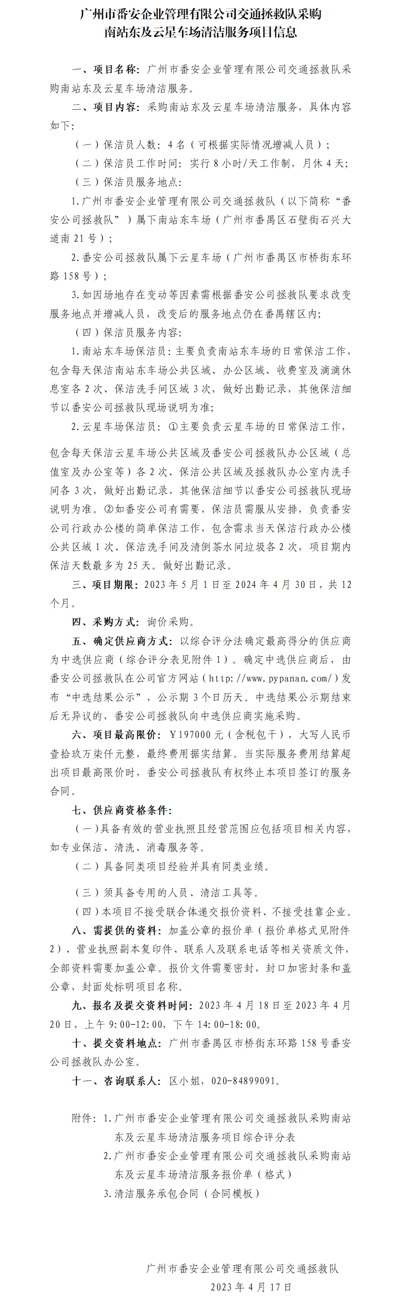 附件2:广州市番安企业管理有限公司交通拯救队采购南站东及云星车场清洁服务报价单(格式).pdf