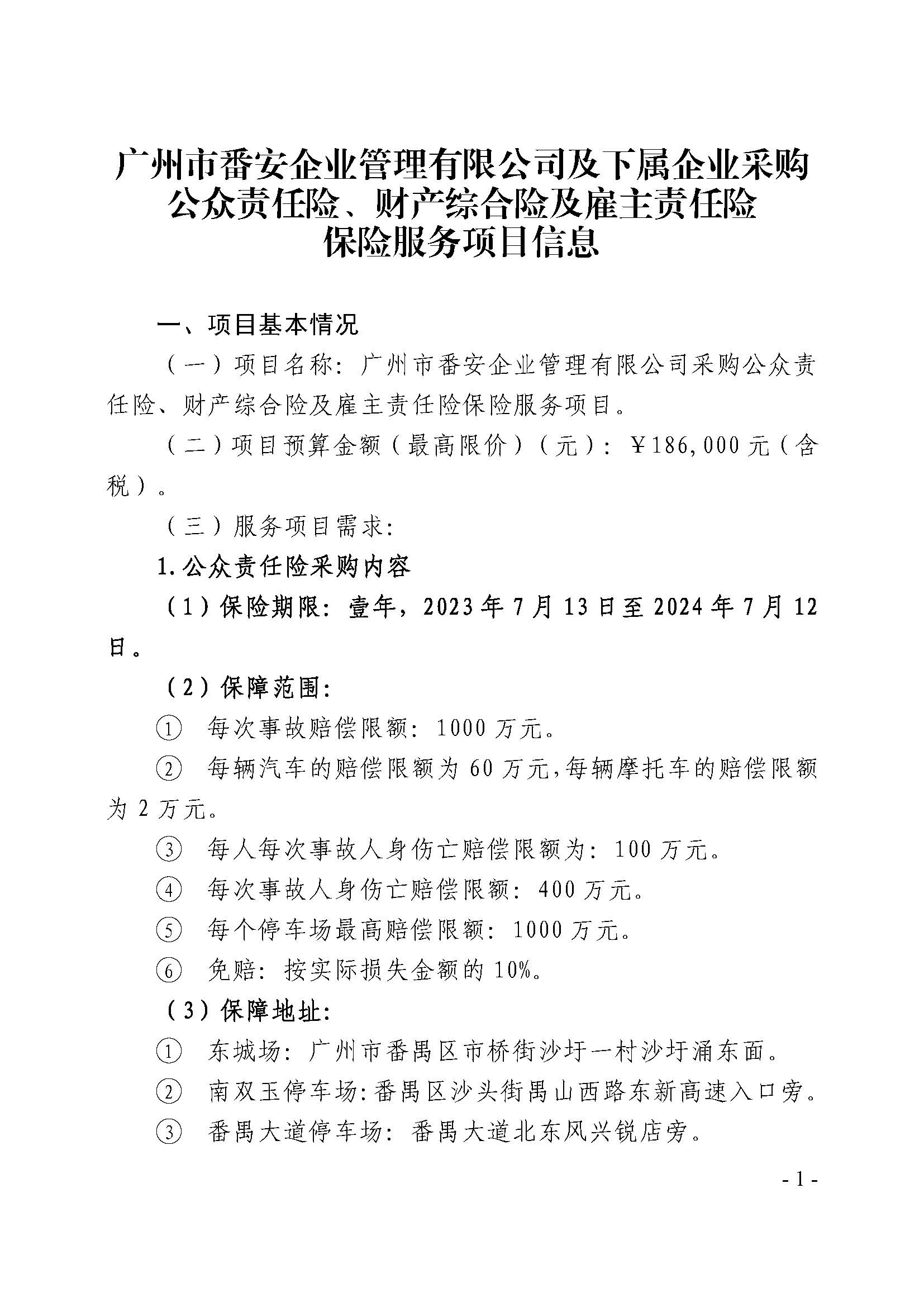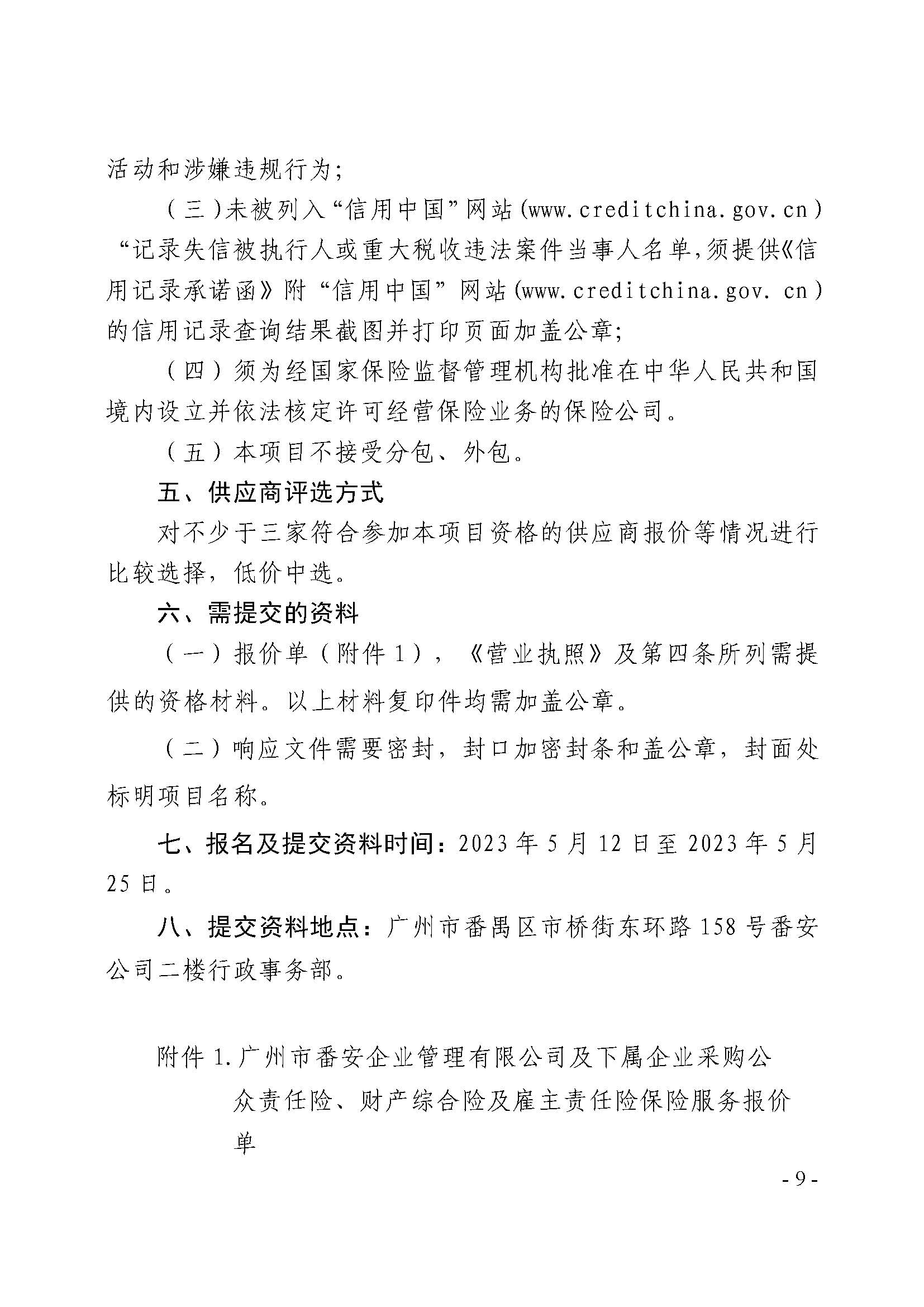 附件1:广州市番安企业管理有限公司及下属企业采购公众责任险、财产综合险及雇主责任险保险服务报价单.doc