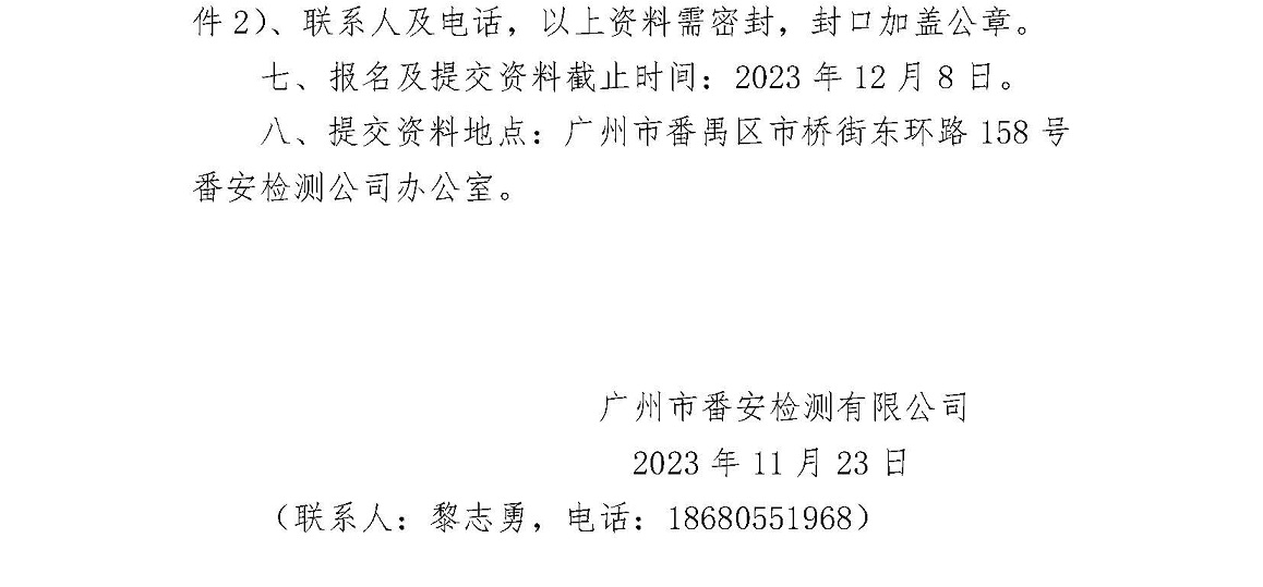 广州市番安检测有限公司检测设备拆迁服务采购项目信息