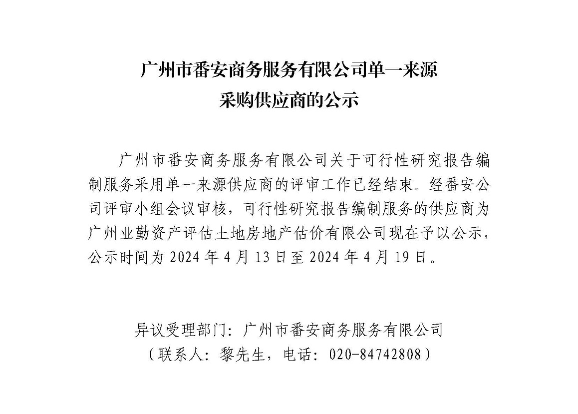 广州市番安商务服务有限公司单一来源采购供应商的公示