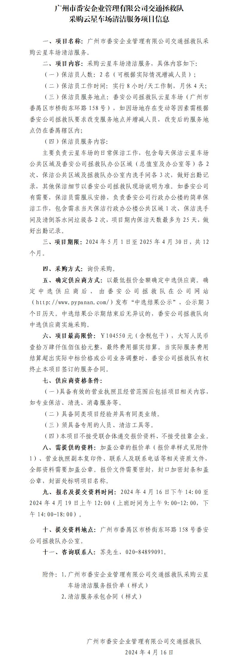 附件1:广州市番安企业管理有限公司交通拯救队采购云星车场清洁服务报价单(样式).pdf