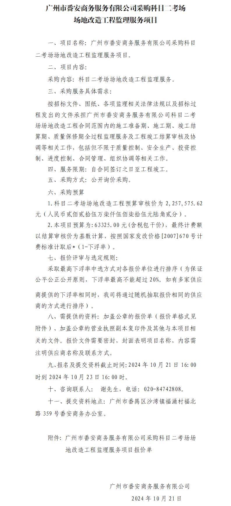 广州市番安商务服务有限公司采购科目二考场场地改造工程监理服务项目信息