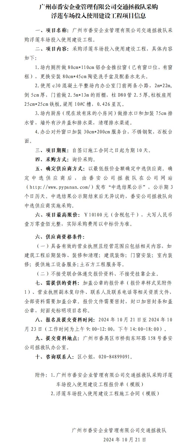 附件1 广州市番安企业管理有限公司交通拯救队采购浮莲车场投入使用建设工程报价单(模版).xls