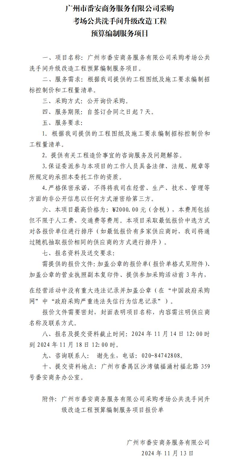 附件:广州市番安商务服务有限公司采购考场公共洗手间升级改造工程预算编制服务项目报价单.xls