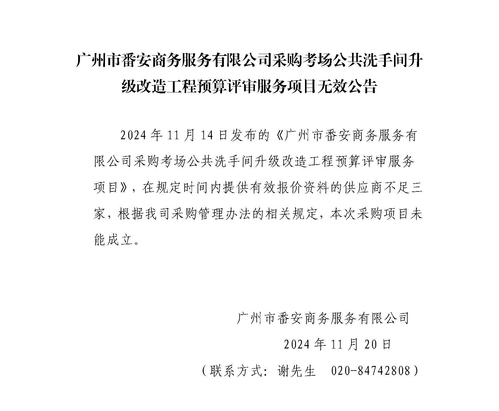 广州市番安商务服务有限公司采购考场公共洗手间升级改造工程预算评审服务项目无效公告