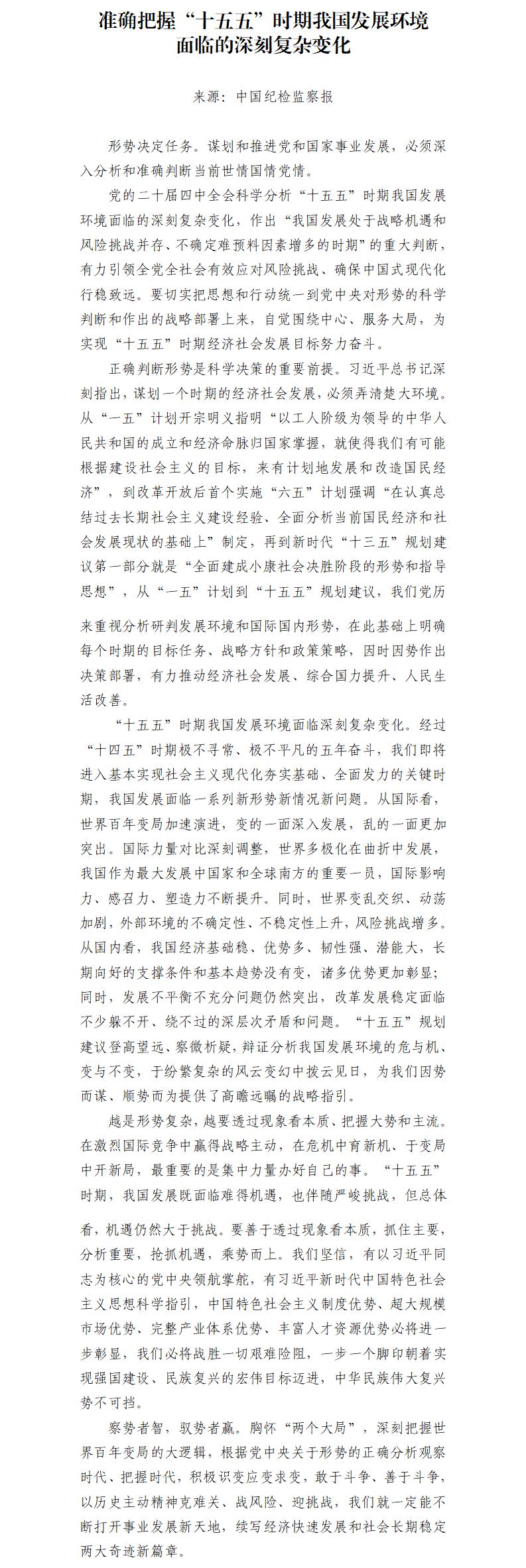 准确把握“十五五”时期我国发展环境面临的深刻复杂变化