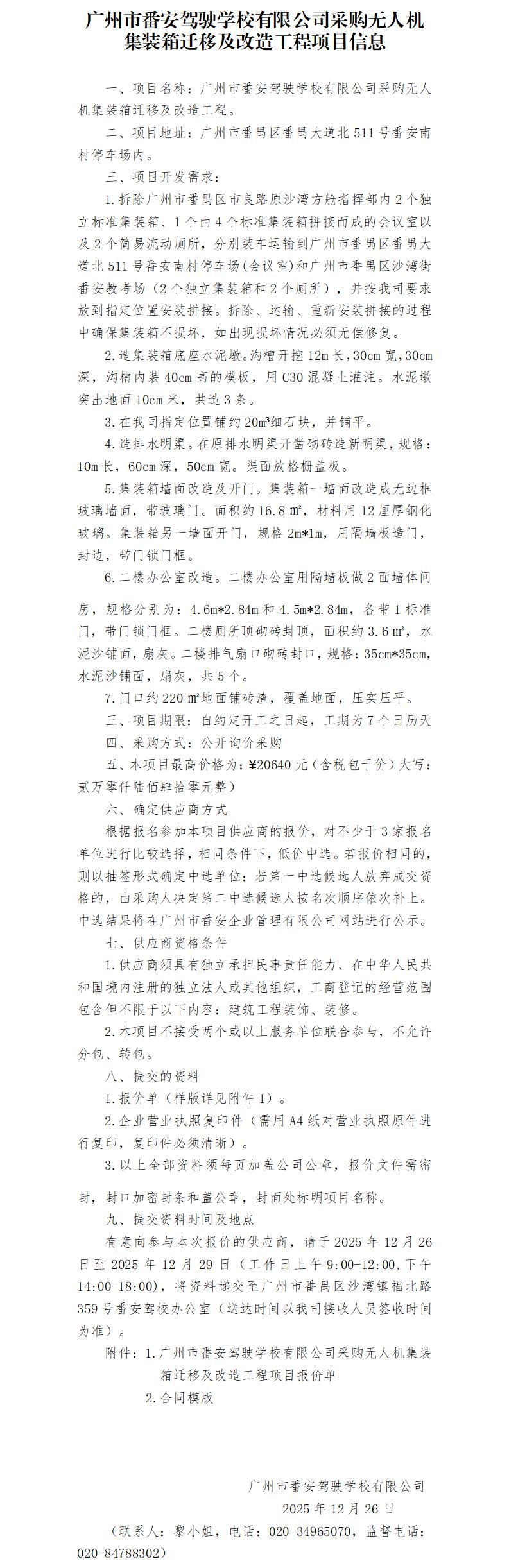 附件1:广州市番安驾驶学校有限公司采购无人机集装箱迁移及改造工程项目报价单.xls